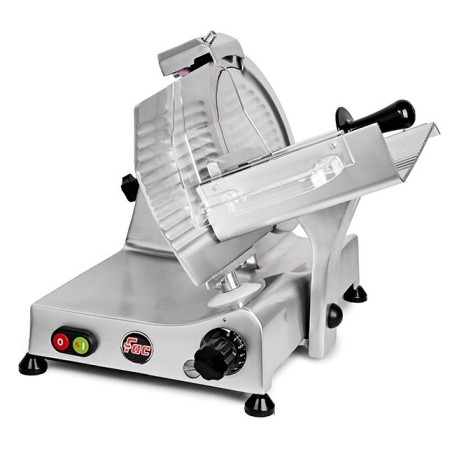 L'affettatrice modello F275E costruita in lega di alluminio trattata anodicamente ha il vantaggio di una rapida pulizia ed assoluta igiene. Il regolatore dello spessore di taglia da 0 a 16mm e molto sensibile e permette una regolazione decimale. L'affilatoio di facile montaggio semplifica il lavoro dell'utente mantenendo efficiente il taglio perfetto della merce. Il piatto montato su cuscinetti a sfere ha una scorrevolezza eccezionale e permette di tagliare salumi pesanti, arrosti, formaggi, pesce, carni dure ed altro.