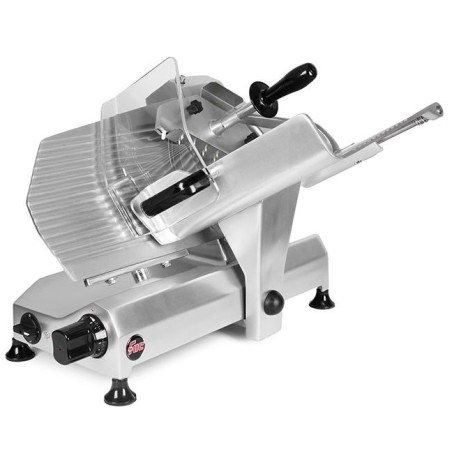 L'affettatrice modello F300CL costruita in lega di alluminio trattata anodicamente ha il vantaggio di una rapida pulizia ed assoluta igiene. Il regolatore dello spessore di taglia da 0 a 16mm è molto sensibile e permette una regolazione decimale. L'affilatoio di facile montaggio semplifica il lavoro dell'utente mantenendo efficiente il taglio perfetto della merce. Il piatto montato su cuscinetti a sfere ha una scorrevolezza eccezionale e permette di tagliare salumi pesanti, arrosti, formaggi, pesce, carni dure ed altro.