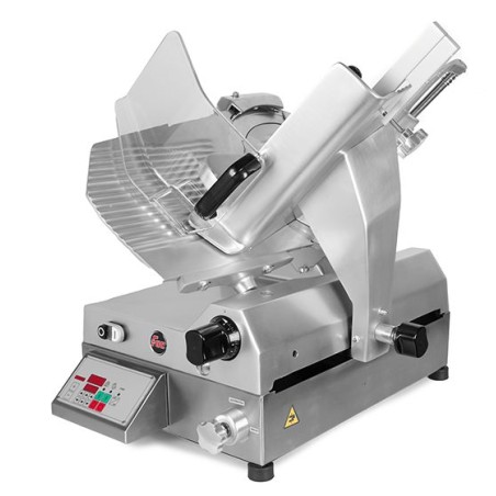 Viene montata di serie una lama di terza generazione per taglio salumi e formaggi, regolatore dello spessore di taglio da 0 a 16 è molto sensibile e permette una regolazione decimale