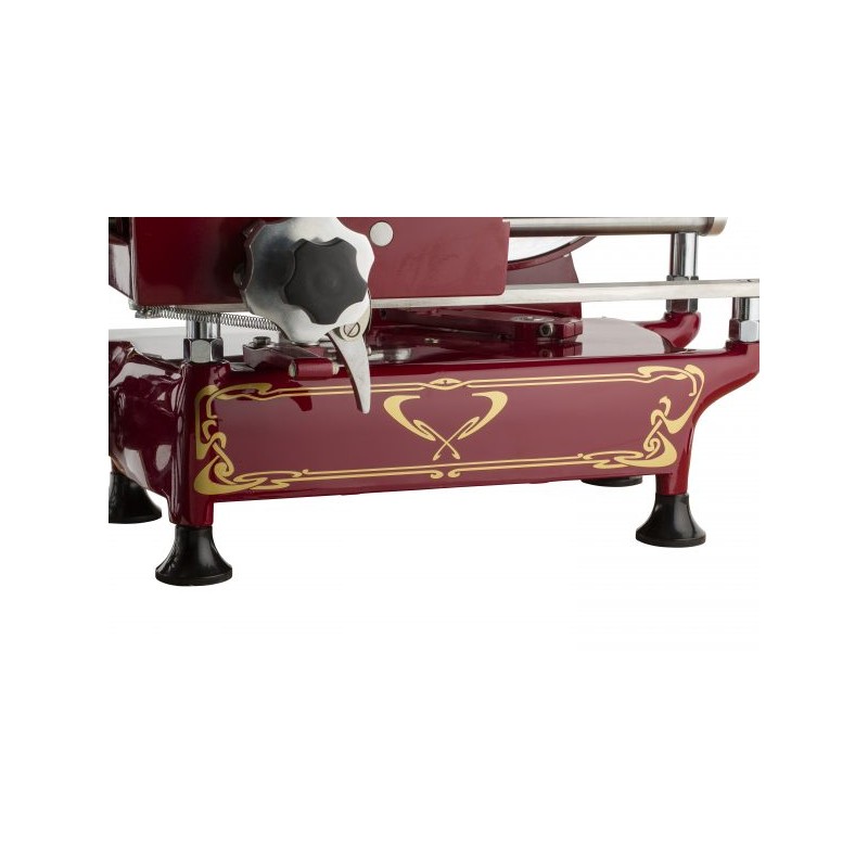 Tutte le nostre affettatrici a volano possono essere impreziosite aggiungendo un decoro su cassa, castello e cappottina: