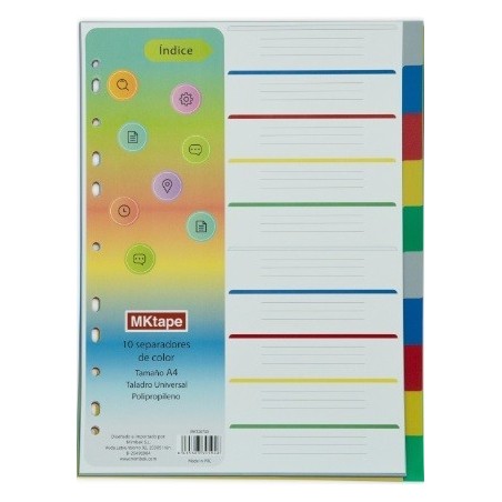 Mktape Conf. 10 Divisori Formato A4 FORI Universali In Propilene Colori Assortiti MKT20750
