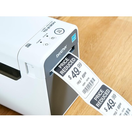 La stampante per etichette e biglietti TD-2120N, con tecnologia termica diretta, include una scheda di rete cablata, ha una risoluzione di stampa di 203 dpi e una velocità di 152,4 mm/s (6 pollici al secondo). Grazie al suo design, è possibile utilizzare rotoli fino a 63 mm (2”) di larghezza e 127 mm (5”) di diametro.