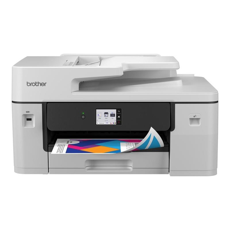 Brother MFC-J6760DW è una stampante multifunzione a getto d'inchiostro a colori A3, ideale per gli uffici, che offre stampa, copia, scansione e fax, con stampa fronte-retro automatica e stampa di rete tramite Wi-Fi ed Ethernet. È inoltre dotata di touchscreen a colori e supporto per vari sistemi operativi. È una soluzione completa per i gruppi di lavoro che cercano efficienza, qualità (fino a 1200 x 4800 DPI) e velocità (fino a 31 ppm in bianco e nero) per documenti e progetti creativi, comprese le brochure.