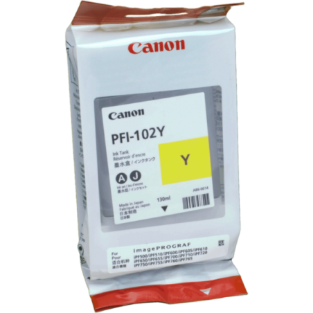 CODICE OEM: 0897B001 / PFI-102Y / PFI102Y / PFI102 Y COMPATIBILE PER: Canon IPF 500, 600, 605, 610, 650, 655, 700, 710, 720, 750, 755, LP17 / IPF500 / IPF600 / IPF605 / IPF610 / IPF650 / IPF655 / IPF700 / IPF710 / IPF720 / IPF750 / IPF755 / LP 17