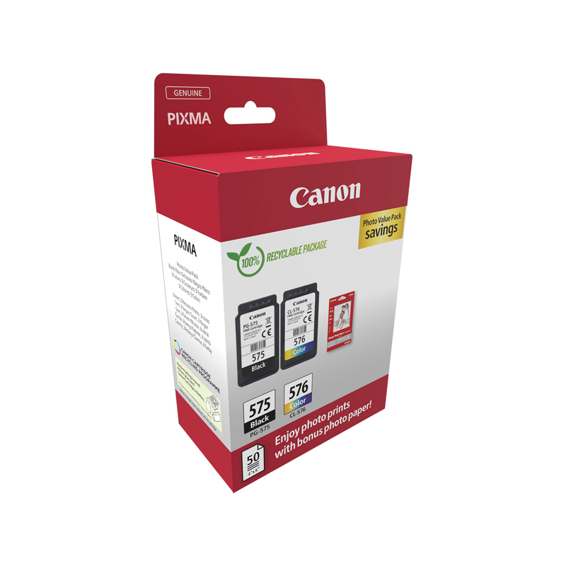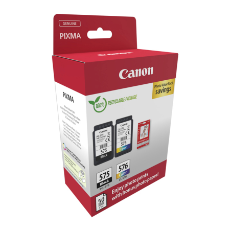 Confezione da 2 cartucce d'inchiostro originali Canon PG-575 CL-576 + 50 fogli di carta fotografica 5438C004