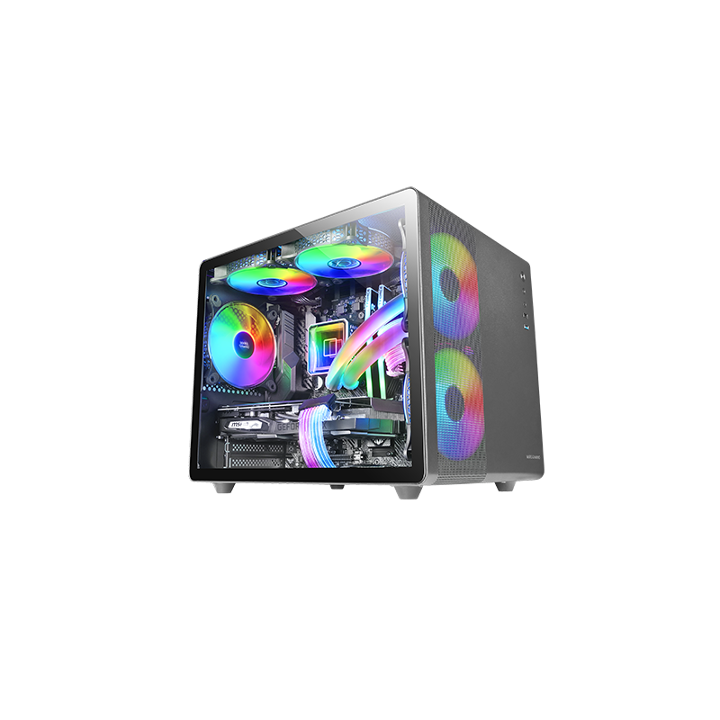Il case da gioco compatto MC-400 offre una fusione di innovazione e design in un formato compatto, ideale per configurazioni avanzate Micro-ATX e Mini-ITX. Questa esclusiva custodia in metallo presenta un design della camera a doppia faccia, un triplo raffreddamento FRGB integrato, una finestra completamente in vetro temperato e un pannello laterale completamente in rete, fornendo un'estetica elegante e moderna. Inoltre, supporta il raffreddamento a liquido interno fino a 240 mm, posizionato esclusivamente nella seconda camera per una dissipazione ottimale del calore, garantendo che i componenti rimangano freschi anche durante le sessioni di gioco più intense. Questa soluzione compatta ma potente è progettata per soddisfare le esigenze degli odierni sistemi di gioco ad alte prestazioni.