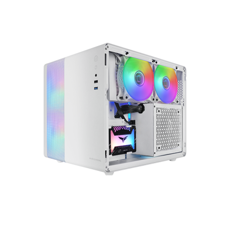Il case compatto professionale MC-MPRO unisce design all'avanguardia e struttura compatta, ideale per sistemi avanzati Micro-ATX e Mini-ITX. Questa custodia in metallo presenta una configurazione a doppia camera, un triplo sistema di raffreddamento integrato, un pannello completamente in vetro temperato e un ampio pannello laterale in rete, offrendo un look sofisticato e moderno. Inoltre, supporta il raffreddamento a liquido interno fino a 240 mm, strategicamente posizionato nella camera secondaria per una gestione ottimale del calore, garantendo che l'hardware rimanga fresco anche durante le sessioni ad alte prestazioni. Questa soluzione compatta e potente è progettata per soddisfare i requisiti dei computer ad alte prestazioni di oggi.