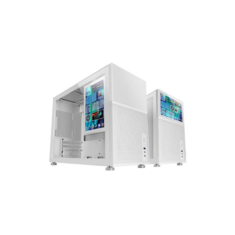 Il case del computer MC-LCD porta il gioco e la produttività a un altro livello, combinando un sofisticato design compatto Micro-ATX con una robusta struttura in acciaio e un design Mesh che garantisce un flusso d'aria ottimale. Il suo schermo LCD IPS da 8 pollici ad alta risoluzione apre un mondo di possibilità di personalizzazione e multitasking. Predisposto per ospitare avanzati sistemi di raffreddamento a liquido e schede grafiche di nuova generazione, questo case non lesina sulla connettività con porte USB 3.0, HD Audio e USB-C. Inoltre, si distingue per l'ampio spazio di archiviazione e le opzioni di espansione, che lo rendono una scelta perfetta in termini di capacità e funzionalità.