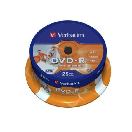 Confezione 25pz Verbatim DVD-R Printables 16x 4.7GB 43538