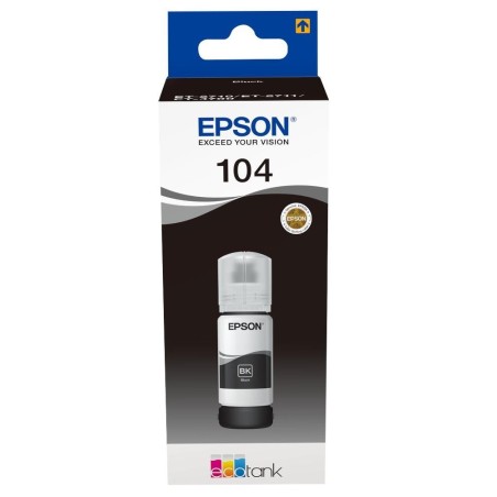 FLACONE INCHIOSTRO PIGMENTATO ORIGINALE EPSON 104 C13T00P140 T104BK NERO ECOTANK ET-2710 70ML