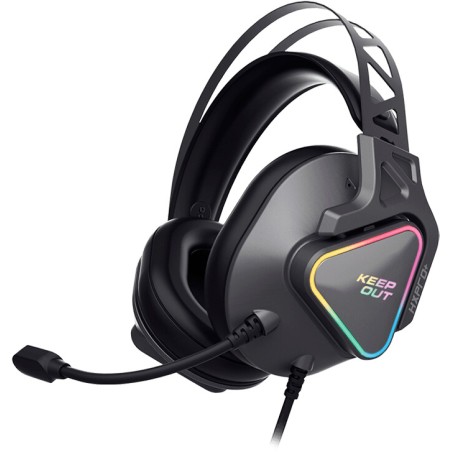 Le cuffie Keep Out offrono prestazioni audio professionali per vincere le tue partite. Incorporano le funzionalità più avanzate per coinvolgere completamente i giocatori nel gioco. I suoi altoparlanti ad alta fedeltà producono un suono di qualità 7.1 e creano un ambiente acustico senza precedenti grazie ai comodi bracci con cuscinetti morbidi e adattabili.