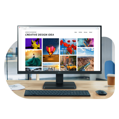 Questo display è dotato di una cornice sottile su tre lati, che consente di creare un ambiente di lavoro adatto attraverso la comoda regolazione dell'inclinazione.