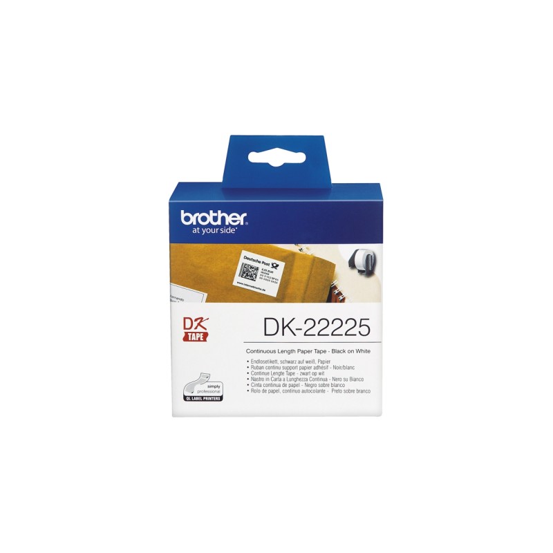 Brother DK22225 (DK-22225) Rotolo di nastro continuo per etichette adesive ORIGINALI di dimensioni personalizzate.