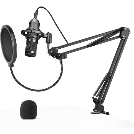 Microfono USB da studio professionale, con braccio regolabile e pattern di registrazione cardioide ad alta precisione; per lo streaming di musica, podcast, voci fuori campo e musica acustica.