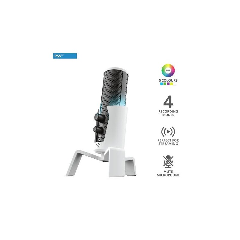 MICROFONO GAMING TRUST GXT 258W Fyru per lo streaming USB 4 in 1 Illuminazione LED