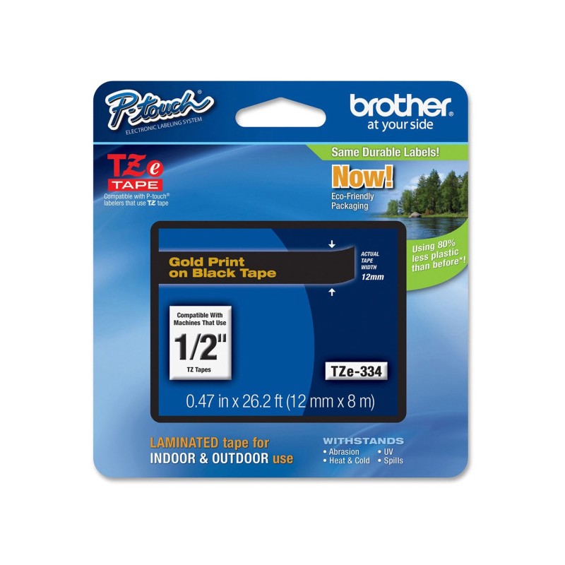 Nastro laminato ORIGINALI Brother TZe334 (TZ-334) per la stampa di etichette con un'etichettatrice elettronica.