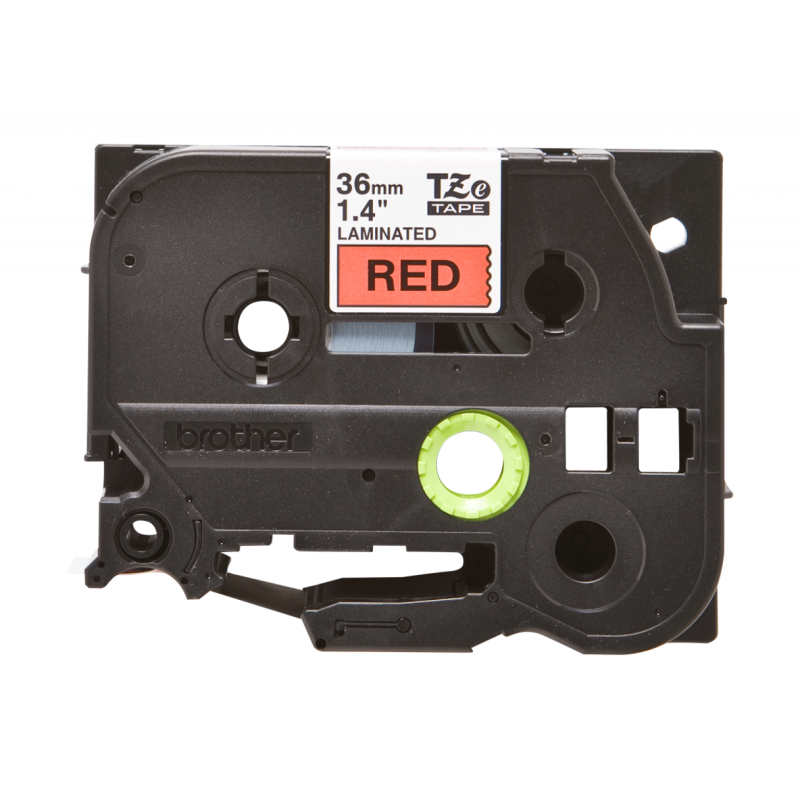 Testo nero su sfondo rosso - Larghezza 36 mm x 8 metri