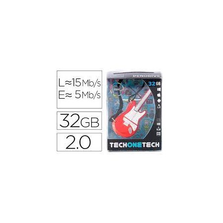 Pendrive TechOneTech Guitar Red One Memoria USB 2.0 32 GB TEC5140-32