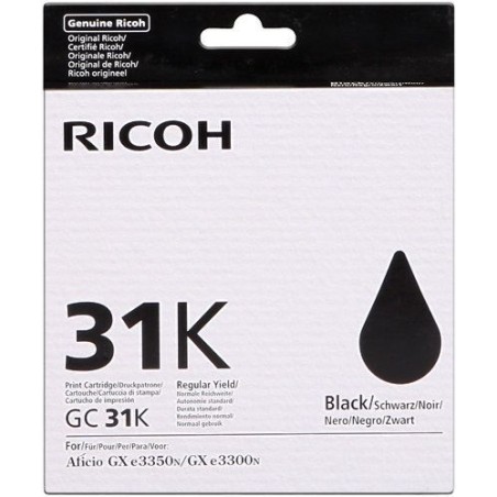 CARTUCCIA ORIGINALE INCHIOSTRO PIGMENTATO PER RICOH 405701 405688 GC-31HK - NERO - STAMPA 4.230 PAGINE