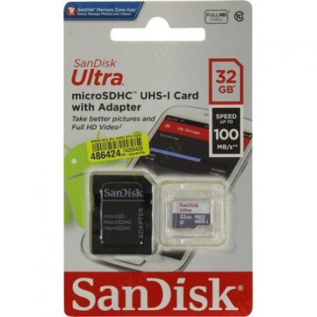Le schede SanDisk Ultra® microSD™ UHS-I ti danno la libertà di acquisire, salvare e condividere più che mai. Con una capacità di 32 GB, la scheda SanDisk Ultra microSD™ ha spazio per archiviare ancora più ore di video ad alta definizione (HD) e offre velocità di trasferimento fino a 100 MB/s per poter spostare rapidamente i contenuti.