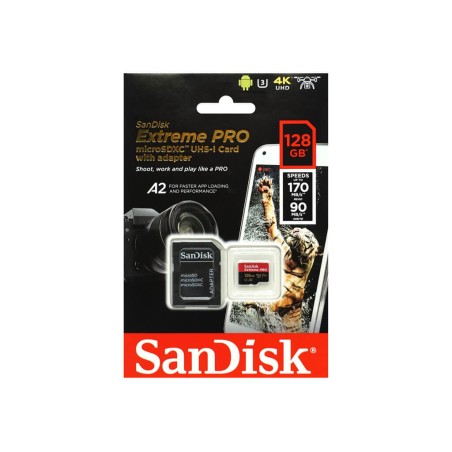 Scheda Memoria Sandisk Extreme Pro Scheda SDXC 128 GB U3 V30 A2 Classe 10 170 MB/s + Adattatore SD SDSQXCY-128G-GN6MA