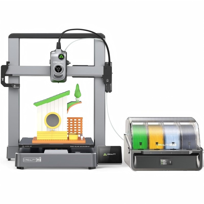 Trasforma i tuoi progetti con Creality Hi Combo, la stampante 3D che ridefinisce la produzione multicolore e la precisione ad alta velocità.