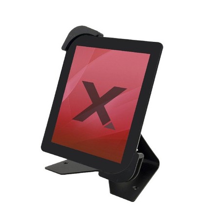Questo supporto è adattabile a tutti i tablet sul mercato da 7,9" a 11" tramite molle laterali estensibili. Dispone di sistema antifurto con chiave e base forata per l'ancoraggio a qualsiasi superficie piana.