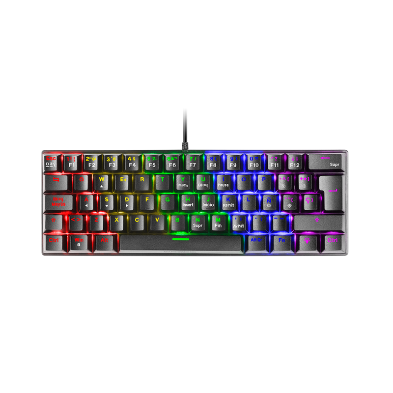 La tastiera da gioco meccanica MK60 offre prestazioni eccezionali in un design ultracompatto al 60%, con tecnologia meccanica antipolvere duratura e durevole. Dotato di 12 effetti di illuminazione RGB arcobaleno, tasti indelebili a doppia iniezione ultra resistenti, tasti funzione e modalità gioco e anti-ghosting avanzato, il MK60 garantisce un'esperienza di gioco superiore ed è facile da trasportare grazie alle sue dimensioni ridotte. Inoltre, offre la massima compatibilità multipiattaforma.