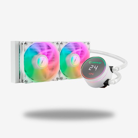 Una delle caratteristiche più utili di questo raffreddamento a liquido è la sua capacità di visualizzare la temperatura della CPU in tempo reale. Attraverso un display integrato, puoi monitorare costantemente le prestazioni termiche del tuo processore. Questa funzione ti dà ulteriore tranquillità poiché sarai sempre consapevole dello stato di salute della tua CPU e potrai adottare misure preventive se necessario. *Per attivare questa funzione è necessario INSTALLARE i driver "Temperature Monitor" **Il collegamento per visualizzare la temperatura deve essere effettuato collegando il cavo USB alla scheda madre.