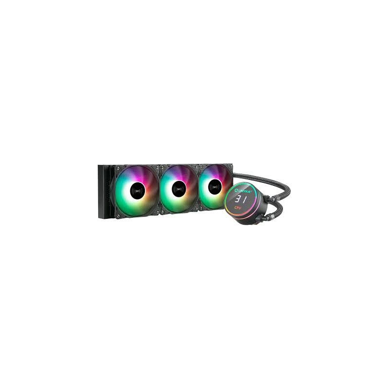 Una delle caratteristiche più utili di questo raffreddamento a liquido è la sua capacità di visualizzare la temperatura della CPU in tempo reale. Attraverso un display integrato, puoi monitorare costantemente le prestazioni termiche del tuo processore. Questa funzione ti dà ulteriore tranquillità poiché sarai sempre consapevole dello stato di salute della tua CPU e potrai adottare misure preventive se necessario. *Per attivare questa funzione è necessario INSTALLARE i driver "Temperature Monitor" **Il collegamento per visualizzare la temperatura deve essere effettuato collegando il cavo USB alla scheda madre.